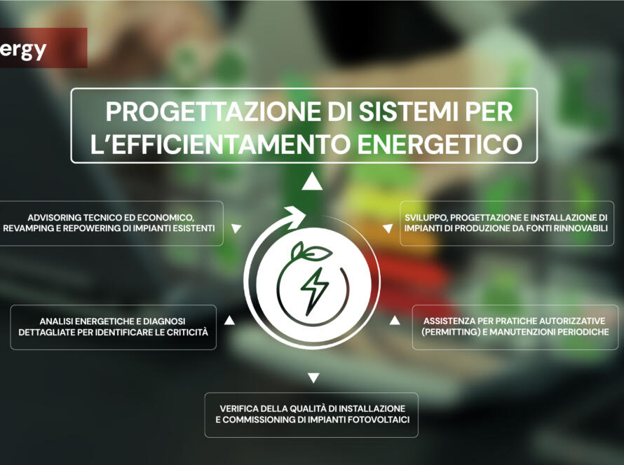 Home > Consulenza > Energy > Progettazione di sistemi per l’efficientamento energetico Progettazione di sistemi per l’efficientamento energetico Progettare sistemi per l’efficientamento energetico significa intervenire in modo strategico su impianti, edifici e processi produttivi, con…